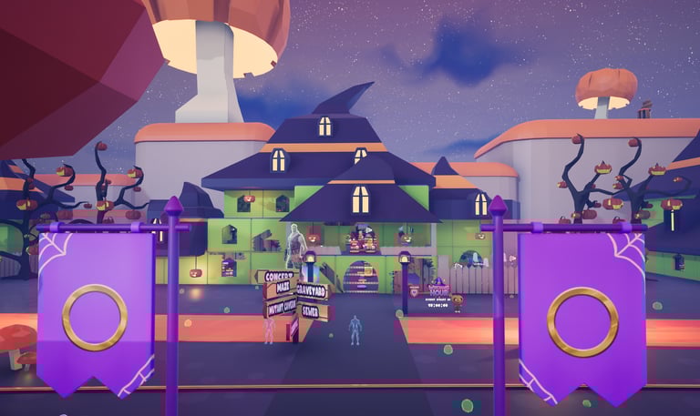 A Halloween-themed Fortnite Tycoon where players build their own witch house through progressive upgrades and themed quests.